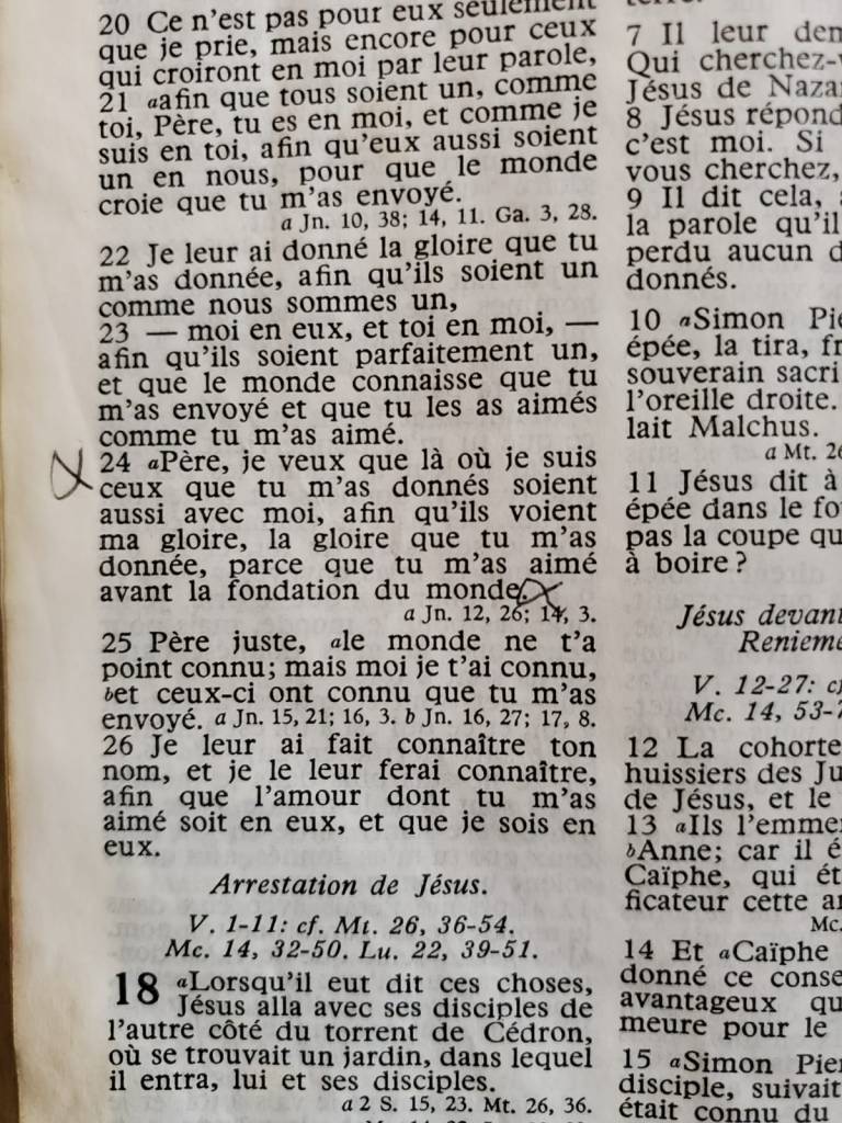 This is a picture of her own french Bible hinted towards the scripture of John 17:24 .This bible was kept by her youngest daughter Marie-Colombe Williamson.